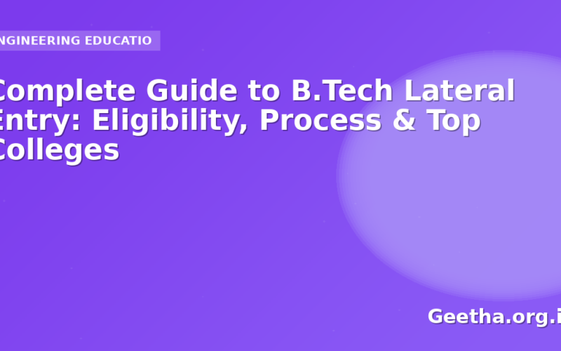 Lateral entry into B.Tech programs offers diploma holders and B.Sc graduates a pathway to obtain an engineering degree in just three years. This comprehensive guide covers everything you need to know about B.Tech lateral entry admissions in India.
